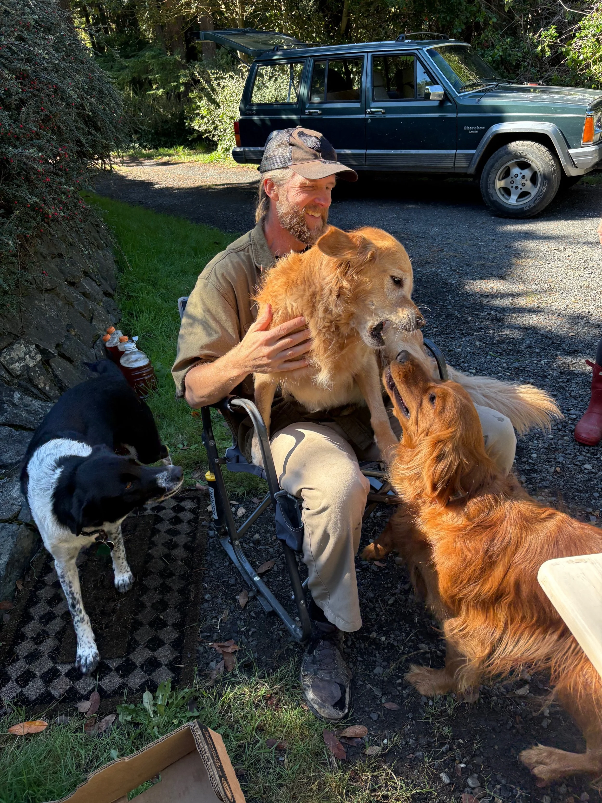 At an apple presses this fall Bailey, Reya, and Otis joined the fun. 10 seconds before this pic was taken, all three were up on the chair with me, playfighting away